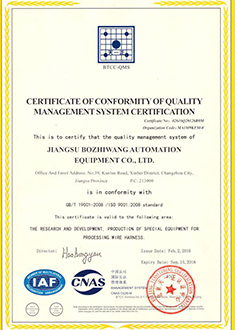 Jiangsu Bozwang Automation Equipment Co., Ltd. — ведущее высокотехнологичное предприятие, специализирующееся на исследованиях, разработках и производстве интеллектуального оборудования для обработки жгутов проводов. Основанная в 2001 году в Чанчжоу, Цзянсу, Китай, мы занимаем площадь более 40 000 квадратных метров с современными производственными мощностями площадью 45 000 квадратных метров и нанимаем более 500 сотрудников, в том числе более 300 квалифицированных технических специалистов.